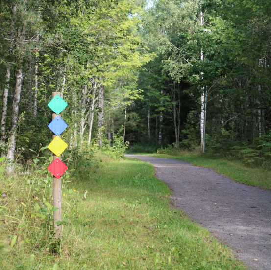 vid vår tipspromenad. Spåret består av bred grusad väg/stig och har endast
